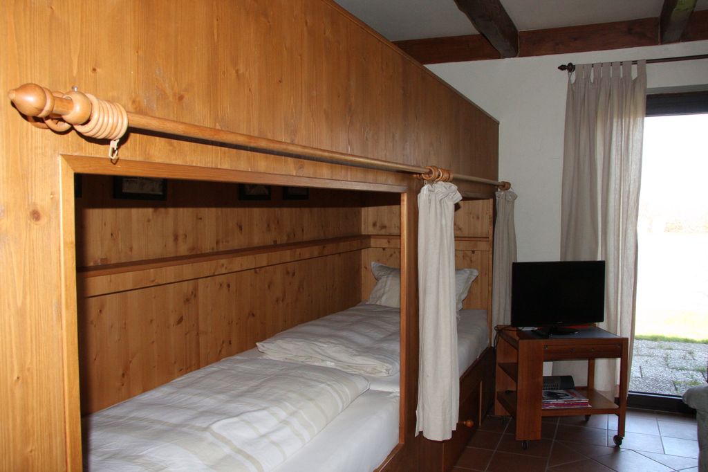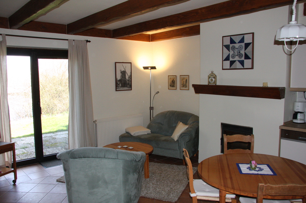 Unsere gemütliche Wohnung Kolkhuus II zeichnet sich besonders durch den Küche/Wohn-/Schlafbereich mit 2 Alkovenbetten sowie einem Kamin aus.